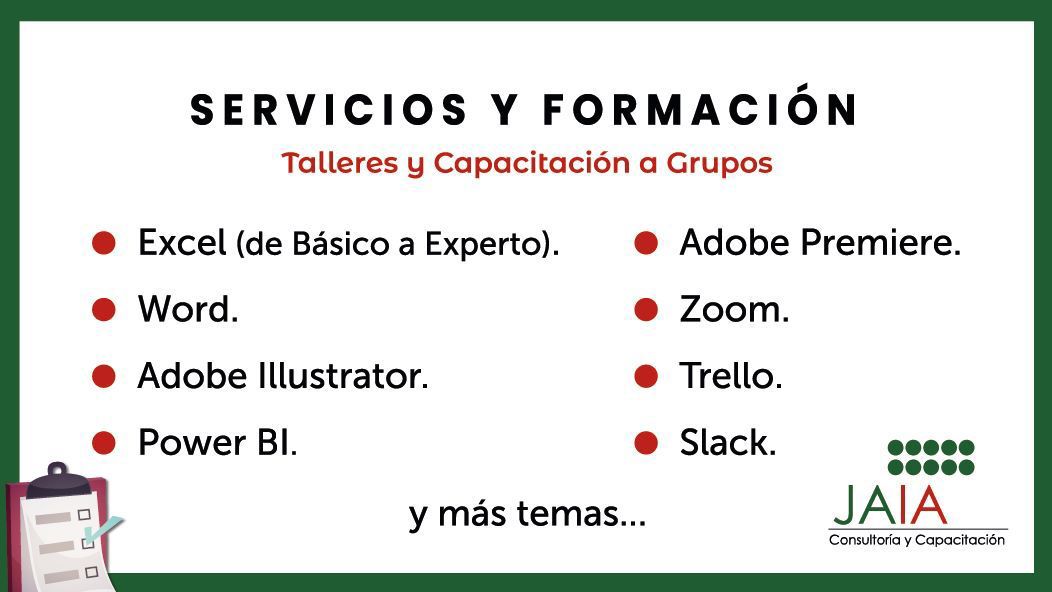 Capacitación y Consultoría en paqueterías de Adobe, Office, APPS (Excel, power BI, Trello)