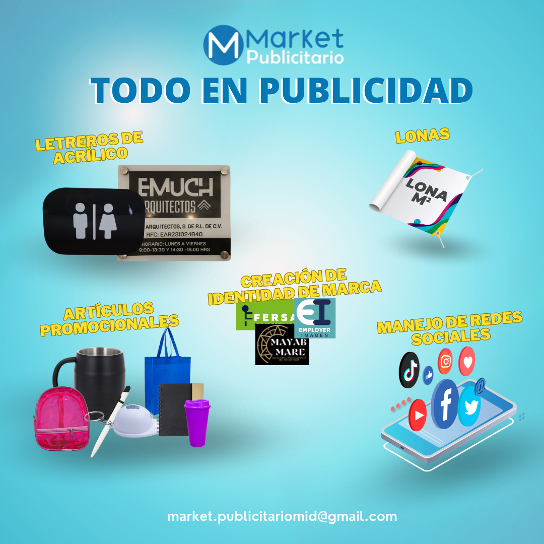 Articulos promocionales, playeras, lonas, Letreros de acrílico, manejo de redes sociales, diseño de contenido